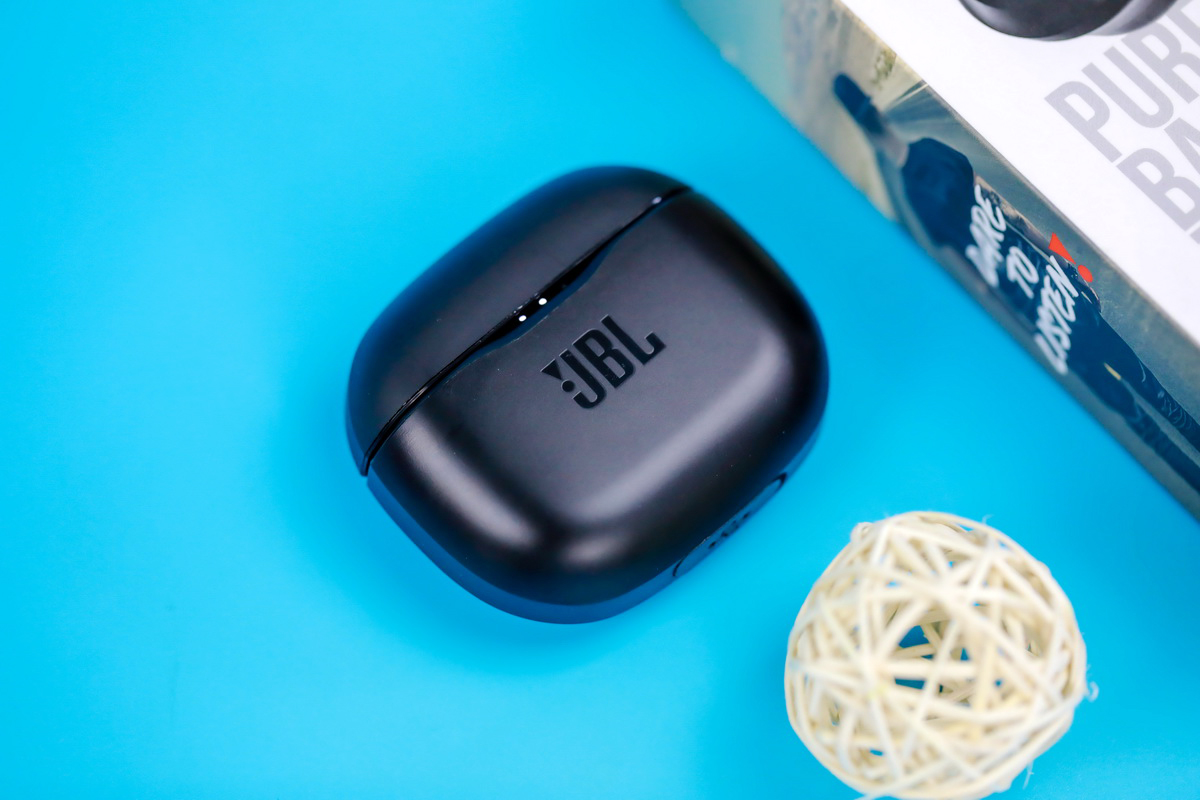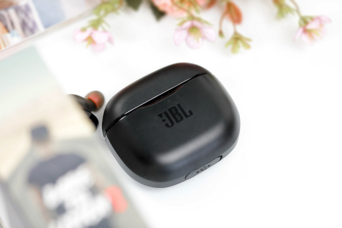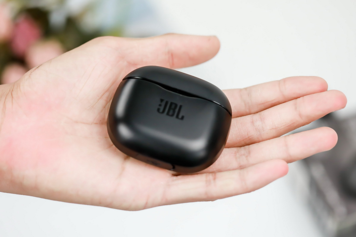 便攜收納盒也是充電盒,盒體采用重量較低的塑料材質(zhì),觸感柔滑細(xì)膩,扁圓造型,兩側(cè)采用較為硬朗的曲線,正面是JBL的Logo。上蓋與機(jī)身之間留出一道微小的縫隙,這樣設(shè)計(jì)的好處是可以看到內(nèi)部的電池指示燈,也方便開(kāi)取。