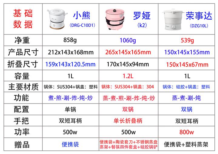 今年新推出的折疊鍋里最好用且最具熱度的我想就是以上這三款產(chǎn)品了 ——小熊旅行折疊鍋電煮鍋 (DRG-C10D1)、榮事達(dá)旅行便攜式折疊電煮鍋(DZG10L)和羅婭旅行折疊多用鍋(k2)。