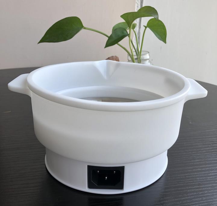榮事達(dá)就稍微遜色了一點(diǎn),一體式,其標(biāo)配是發(fā)熱底座+硅膠鍋身+塑料蓋,功能比較受限,只能在蒸煮方面發(fā)力。