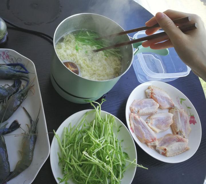 同樣是泡一個(gè)面,級(jí)別還是有差別,羅婭是雙鍋配置,一鍋海鮮面端上來(lái),轉(zhuǎn)手還可以來(lái)一盤(pán)煎雞翅,這在外差旅,絕對(duì)是可以大飽口福,即使是在條件比較有限的情況下!
