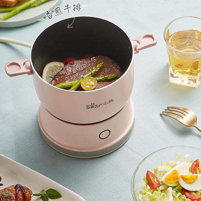 小熊會(huì)比較豐富一點(diǎn),其鍋身采用食品級(jí)高溫油雙面噴涂,不粘鍋,還能有效控制油煙。