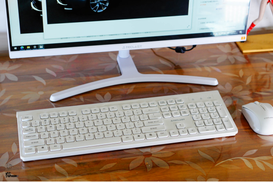 這臺臺電T24 Air 慧眼N5095處處體現(xiàn)出它為用戶省心的設(shè)計宗旨。首先一體機臺附贈了一套臺電自家生產(chǎn)的標準108鍵無線鍵盤鼠標套裝,省卻用戶另外購買的煩惱和使用有線鍵盤鼠標的連接線煩惱;