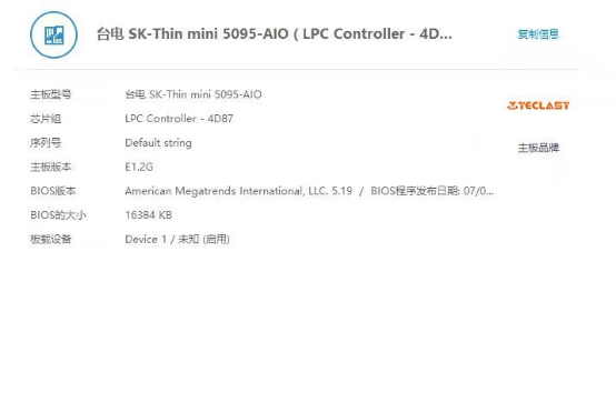 主板方面:T24 Air 慧眼一體機使用的是臺電自家的SK-Thin mini5095-AIO一體機制定主板,使用的芯片組是移動端專用的LPC Controller-4D87。