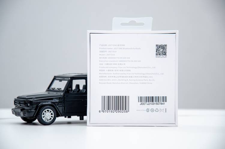 JEET ONE升級版的包裝盒整體以白色為背景,正面只有中間位置是耳機照片,背面是產品信息和廠家信息。整體包裝小巧精致,風格大氣,簡潔實用,符合當下年輕用戶審美潮流。
