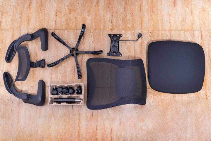 我將所有的零部件取出之后,分別有2個(gè)扶手,頭枕、腰靠、5個(gè)萬向輪,氣桿、坐墊、底盤、以及使用說明書和保修卡。我們依次擺好準(zhǔn)備開始組裝~