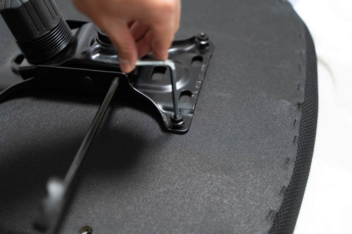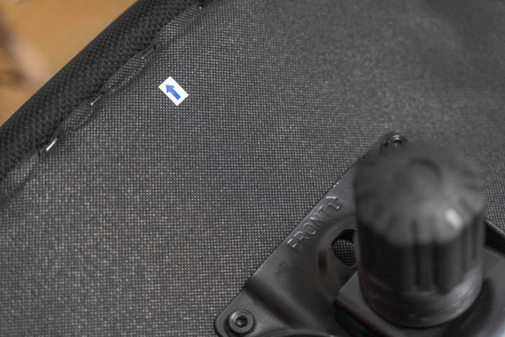 緊接著第3步,就是安裝底盤,很貼心的是,在座墊上有箭頭,在里面同樣也有箭頭。只需要沿著箭頭的方向固定安裝即可。