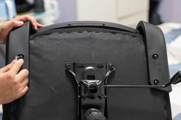 U型頭枕有效支撐頸部保護(hù)頸椎,并且還支持7厘米的升降調(diào)節(jié),可以應(yīng)對不同升高的人群,和靠背一樣,同樣采用的是網(wǎng)狀的結(jié)構(gòu),特別有助于散熱以及舒適性的提升。不過比較遺憾的是,不支持前后調(diào)節(jié)。