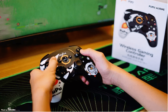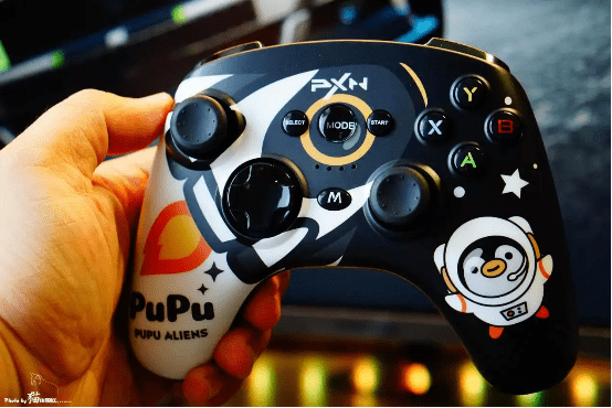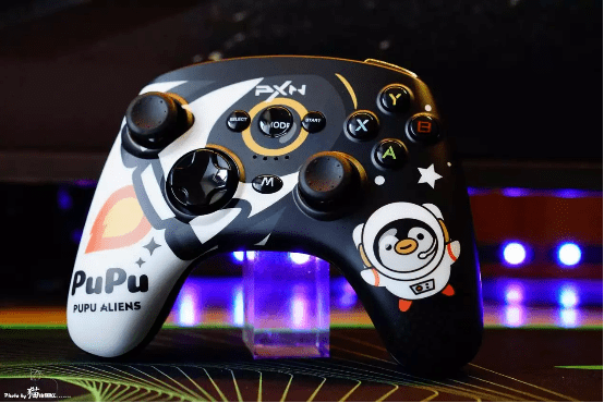 特點一就是可更換個性化外殼。這款PXN-P20游戲手柄有PUPU、DINOO、CICI、OTO等多個噗噗星人的皮膚,這也是我收藏這款手柄的主要原因之一,而我購買的這款就是PUPU里面的PUPU White太空白版本,PUPU版本里面還有一個是PUPU Black星空黑版本的面蓋。