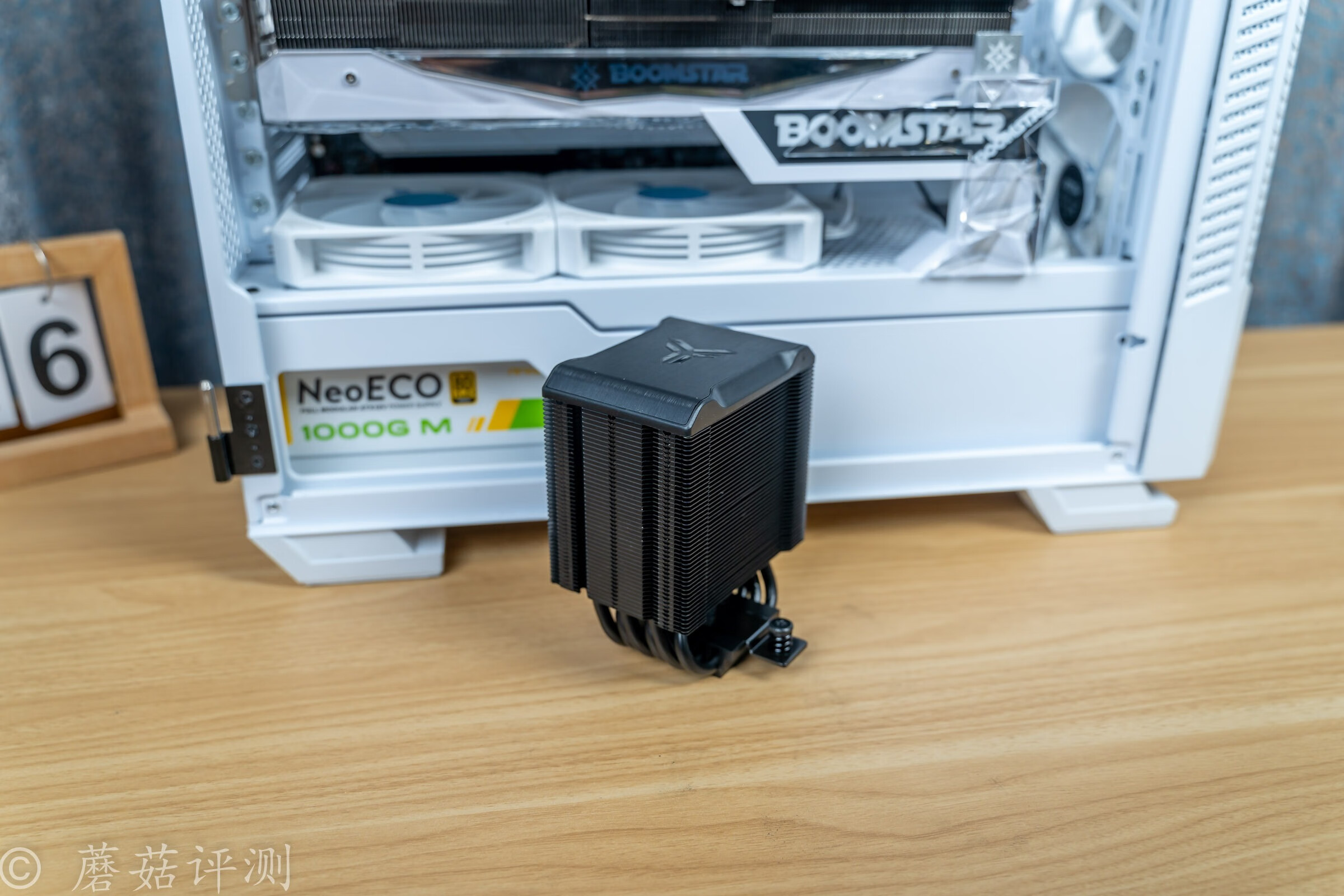 ▼散熱器外觀看起來(lái)很精致,黑色版本是全黑的,包括散熱塔、散熱鰭片和底部的扣具,都是黑色的。
