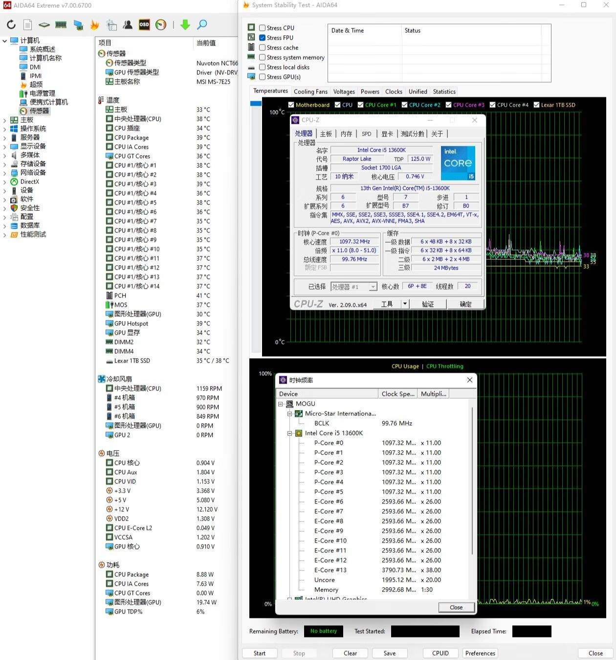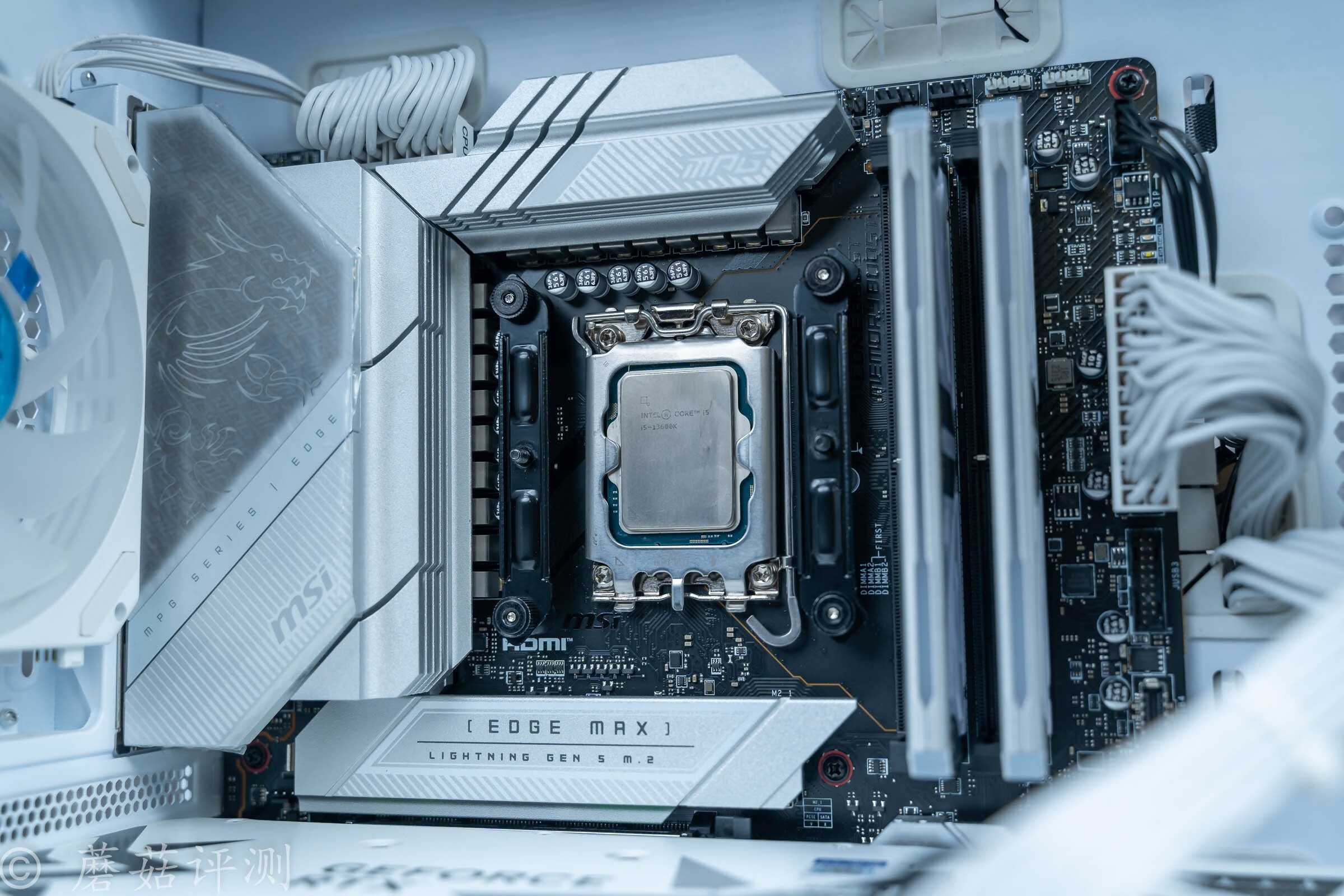 ▼固定扣具設(shè)計(jì)的不錯(cuò),裝機(jī)很方便,處理器是13600K,主板是微星的Z790刀鋒MAX。
