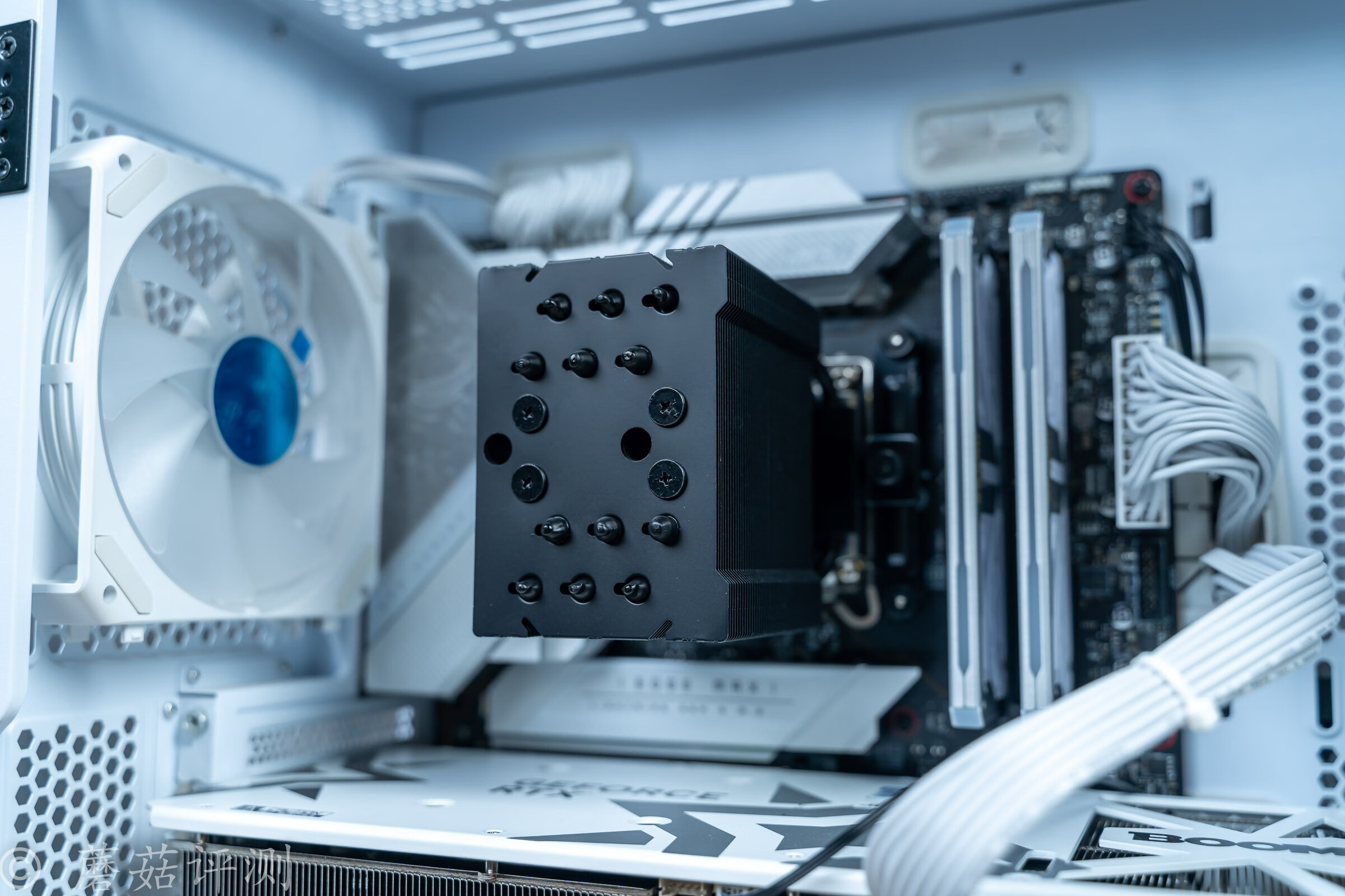 ▼最后蓋上磁吸蓋板,把散熱風(fēng)扇固定好,散熱塔就安裝完成了。
