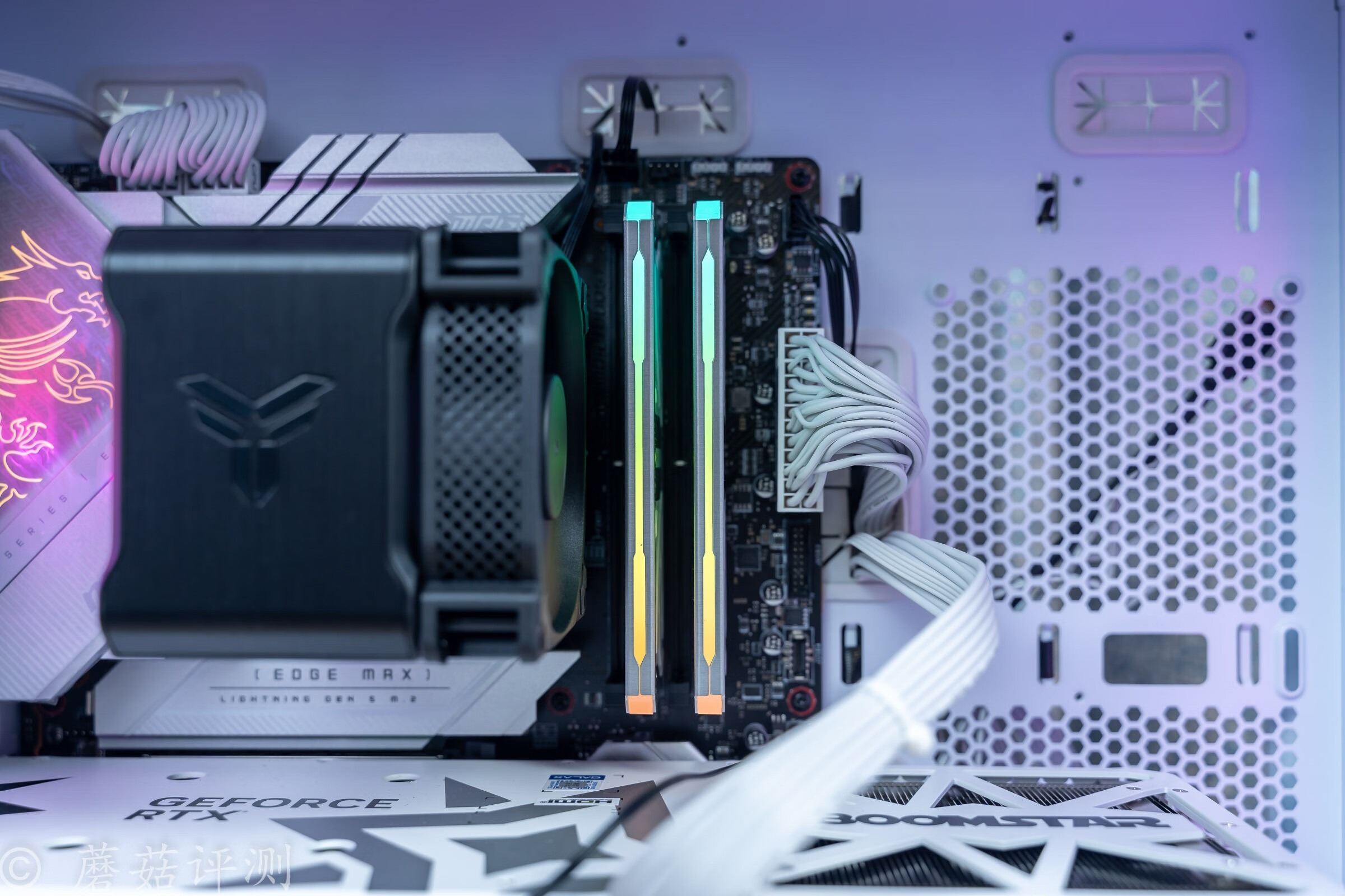 ▼靠近看看,內(nèi)存條側(cè)面的RGB燈帶效果也很不錯(cuò),燈效同樣十分細(xì)膩。