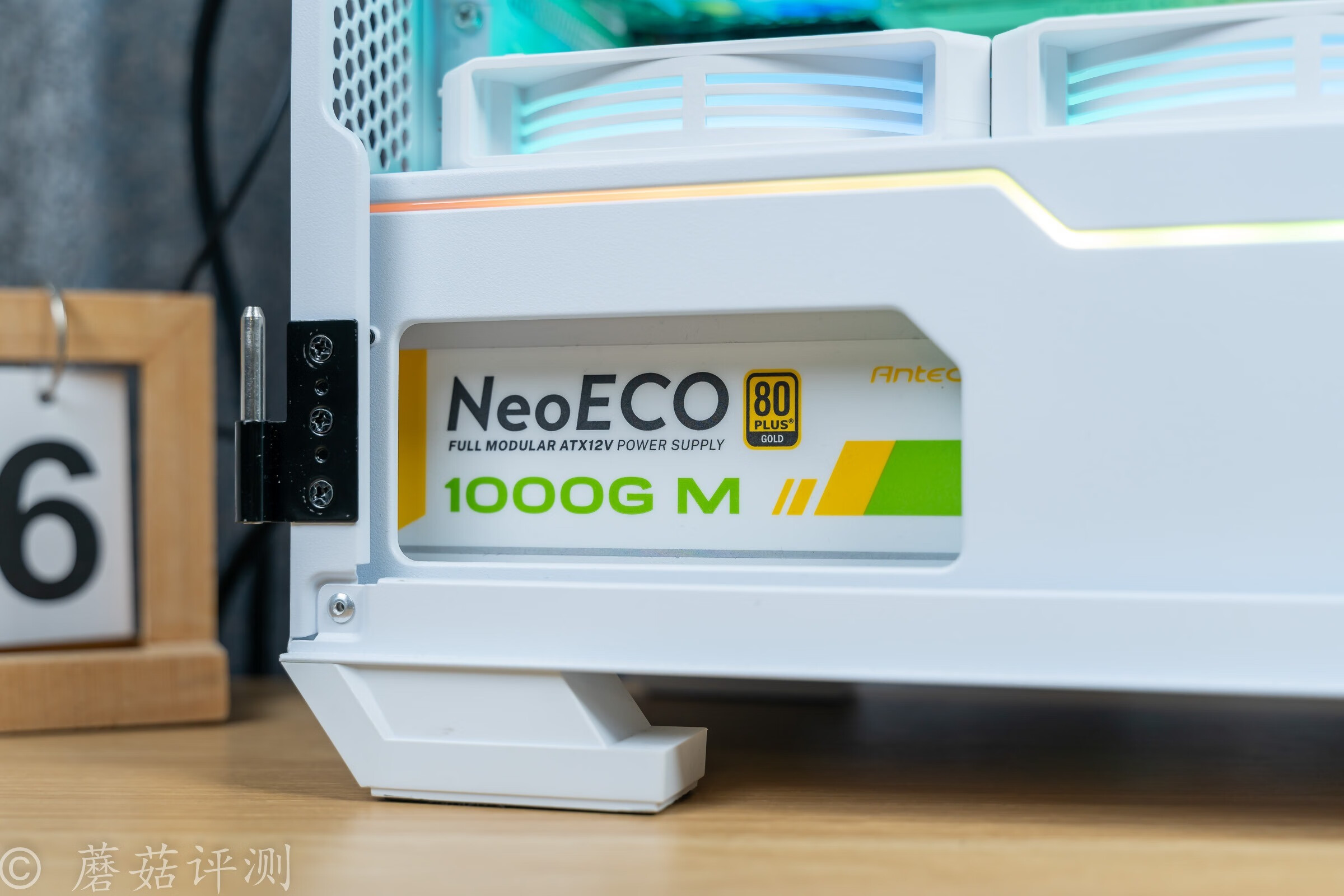 ▼電源用的是安鈦克的NE1000GM金牌全模組電源白色版,這款電源支持最新的ATX 3.0,標(biāo)配PCIe 5.0供電接口,可以輕松滿足RTX40系顯卡的供電需求。另外,這款電源的長(zhǎng)度僅有14cm,日常裝機(jī)的兼容性表現(xiàn)更加優(yōu)秀。