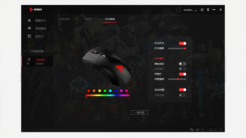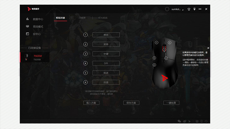 鈦度為旗下所有產(chǎn)品研發(fā)了一款名為“電競(jìng)精靈”的軟件,安裝軟件后可以自動(dòng)識(shí)別當(dāng)前連接的鈦度產(chǎn)品。通過電競(jìng)精靈,可以為守望者鼠標(biāo)自定義按鍵功能、調(diào)整靈敏度以及自定義燈光顏色,并且你所進(jìn)行的修改都可以備份到云端。