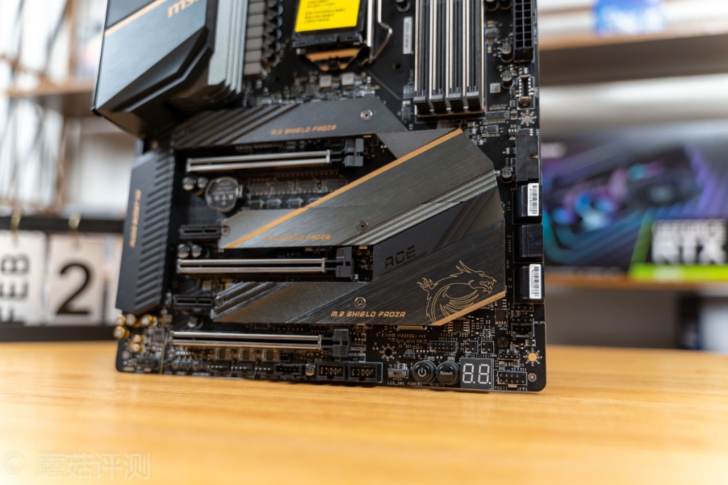 ▼主板是微星的Z490 ACE,IO蓋板部分和南橋部分均有漂亮的幻彩RGB燈效。