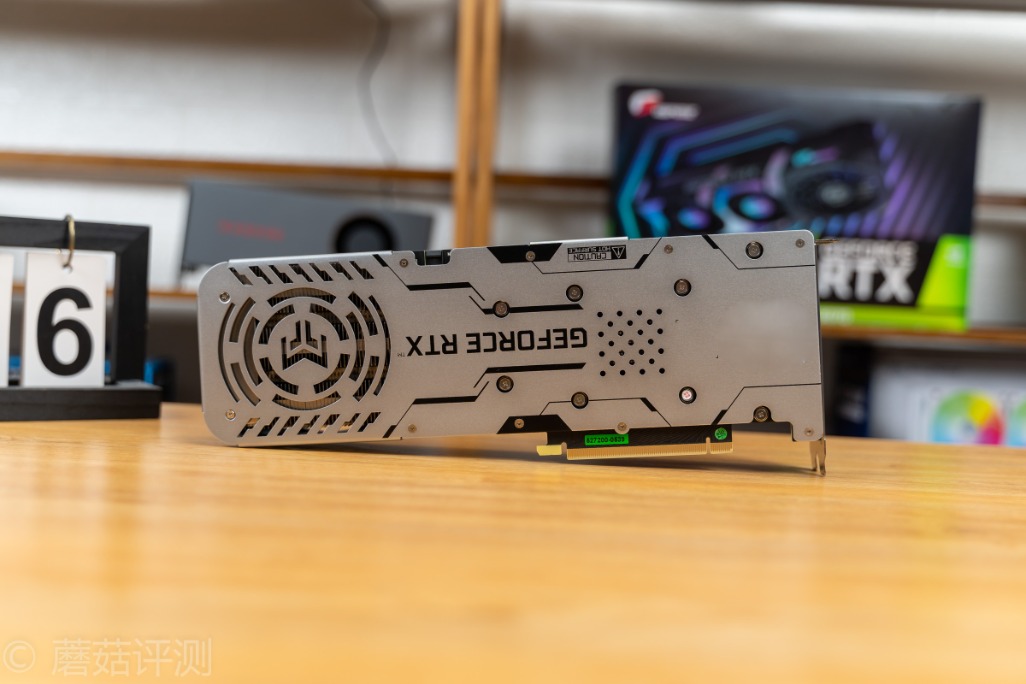 ▼顯卡背面也是金屬背板,面積巨大,左側(cè)還有吹透設(shè)計(jì),增強(qiáng)散熱效果。