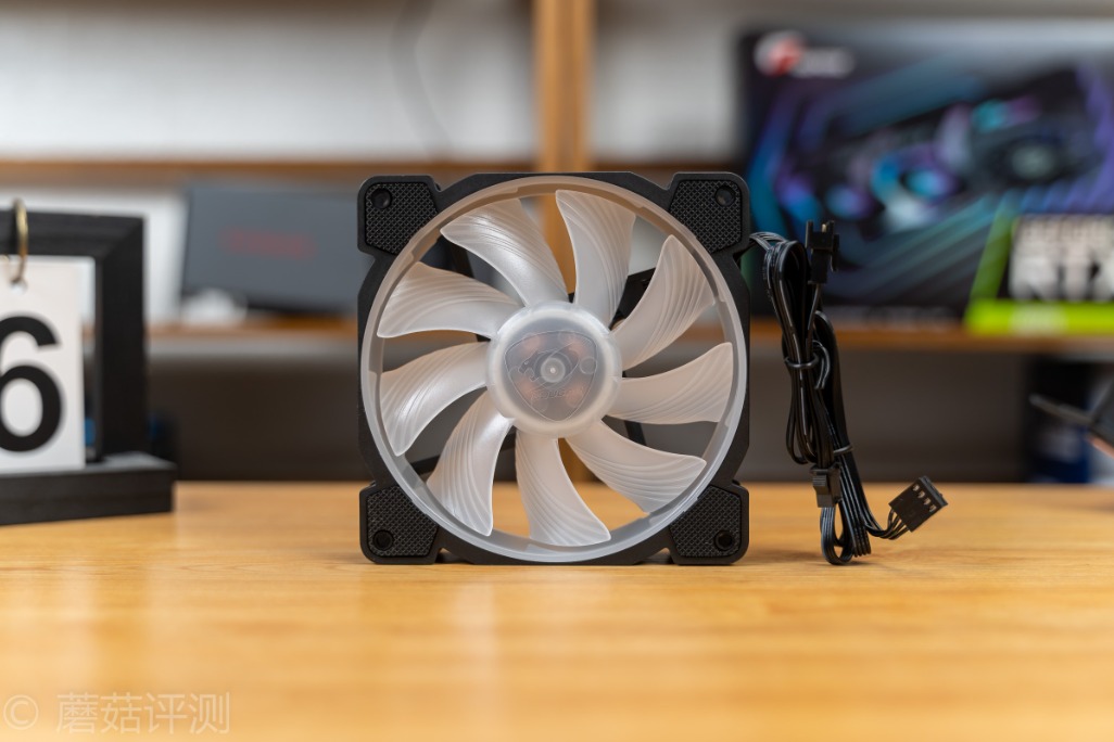 ▼散熱風(fēng)扇也是有很多設(shè)計(jì),首先扇葉就是那種半透明的設(shè)計(jì),可以讓RGB燈效很好的發(fā)散出來,并且在風(fēng)扇的扇葉上,有很多紋理設(shè)計(jì),可以有效的降低風(fēng)燥。風(fēng)扇的扇葉中間還有一個(gè)骨伽的LOGO,很精致。