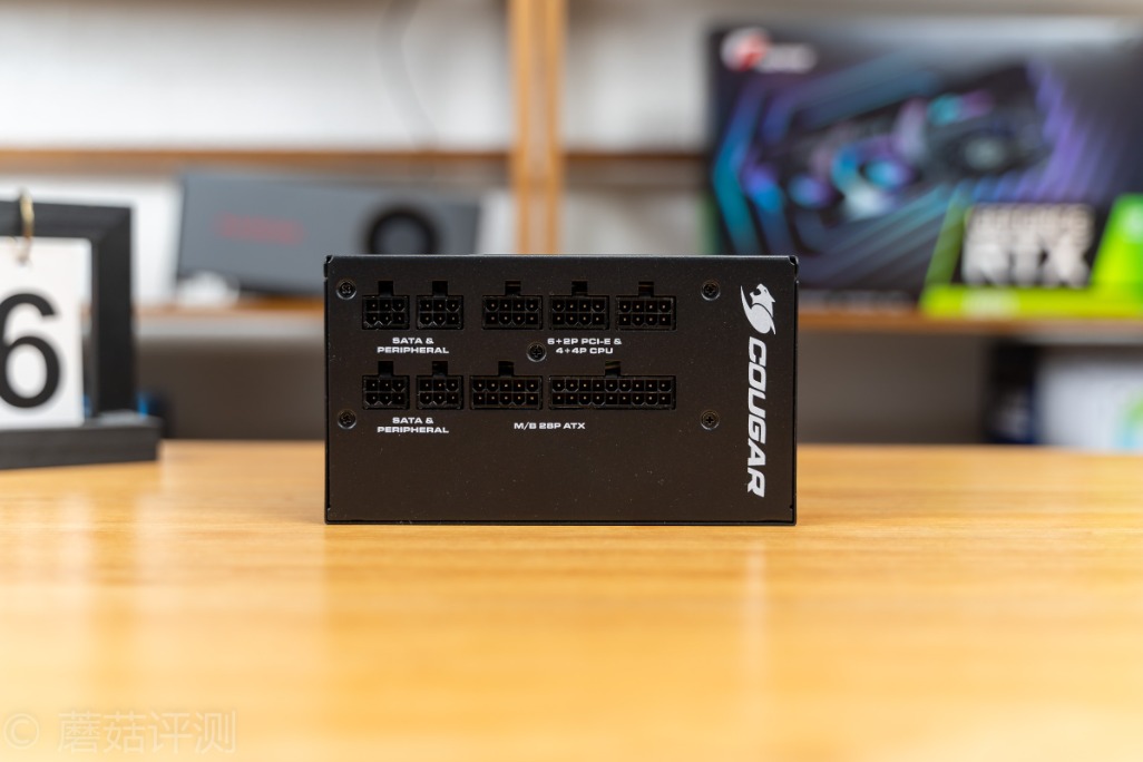 ▼電源的尾部是模組輸出接口,各種接口均有標(biāo)簽,右側(cè)還有骨伽的LOGO。