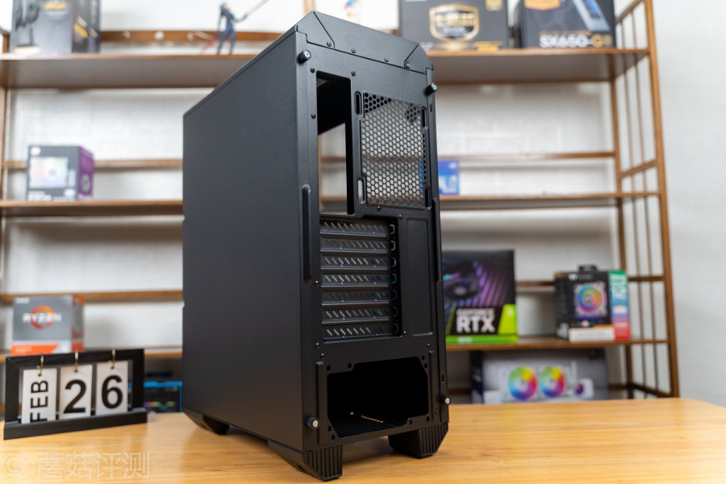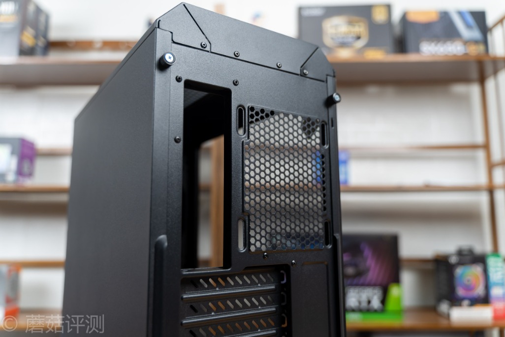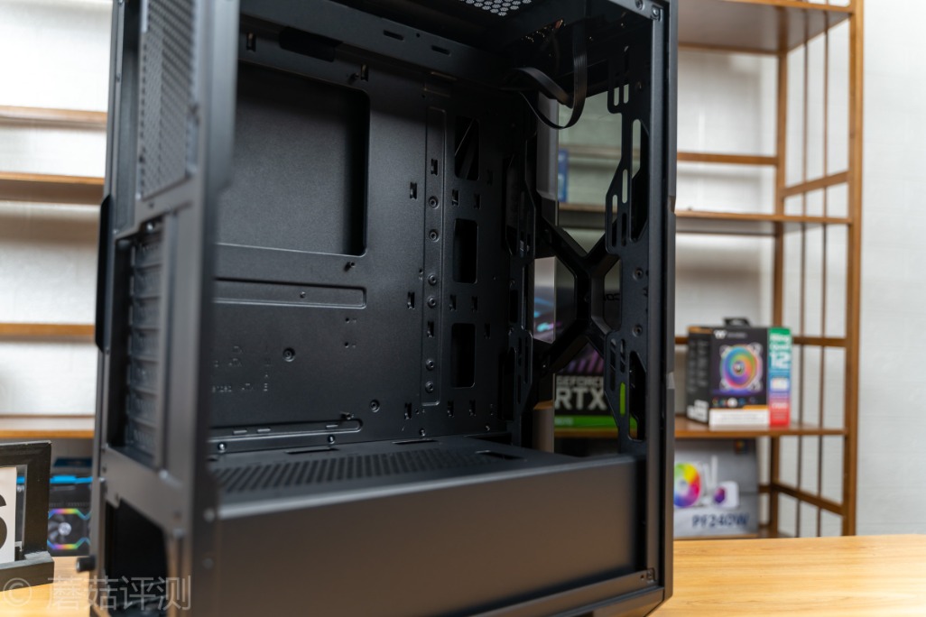 ▼機(jī)箱內(nèi)部空間充足,左側(cè)用于固定主板,上部和后部用于固定機(jī)箱風(fēng)扇。