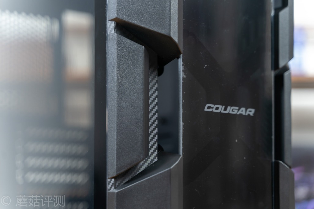 ▼靠近看看,機(jī)箱前部還有碳纖的設(shè)計(jì)點(diǎn)綴。