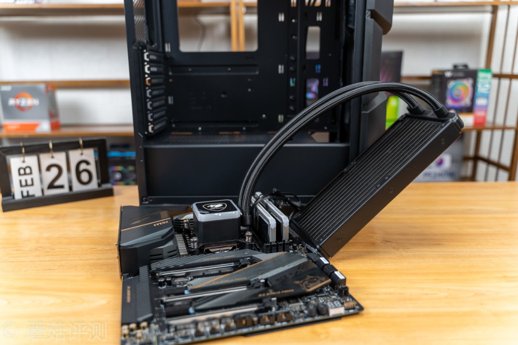 ▼這里順手將水冷安裝固定到主板上,方便裝機(jī)。