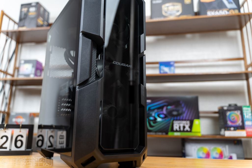 ▼機(jī)箱正面也有一整面的玻璃側(cè)透,看起來質(zhì)感很不錯(cuò)。