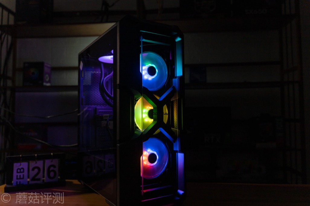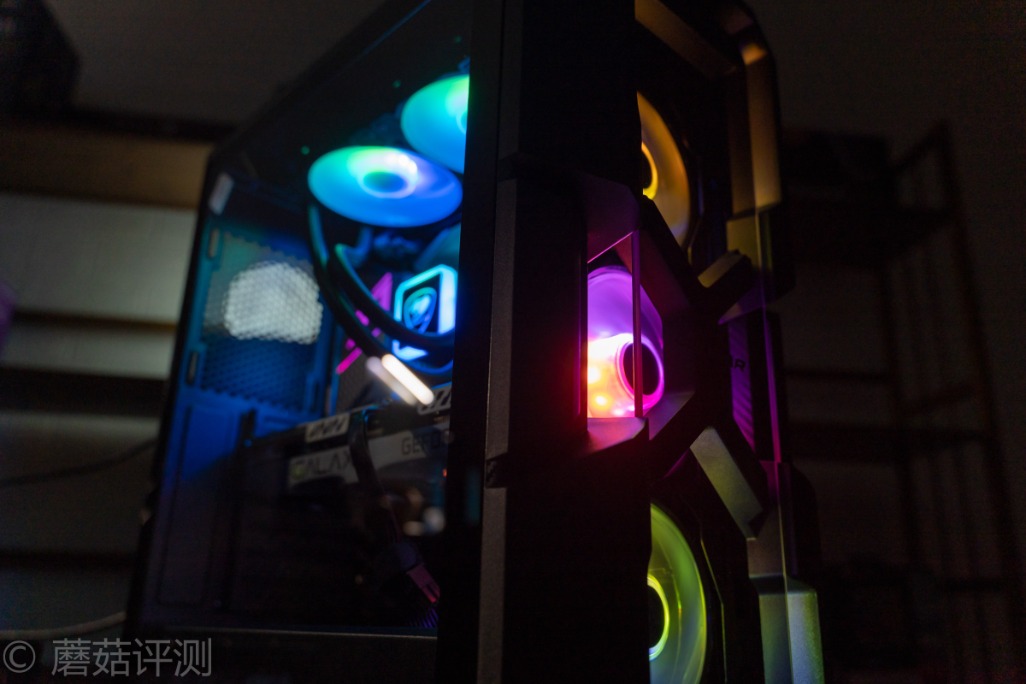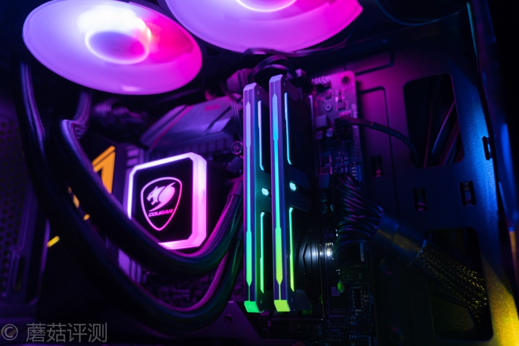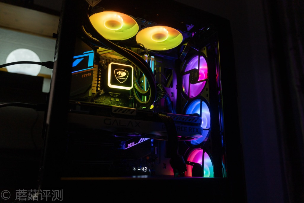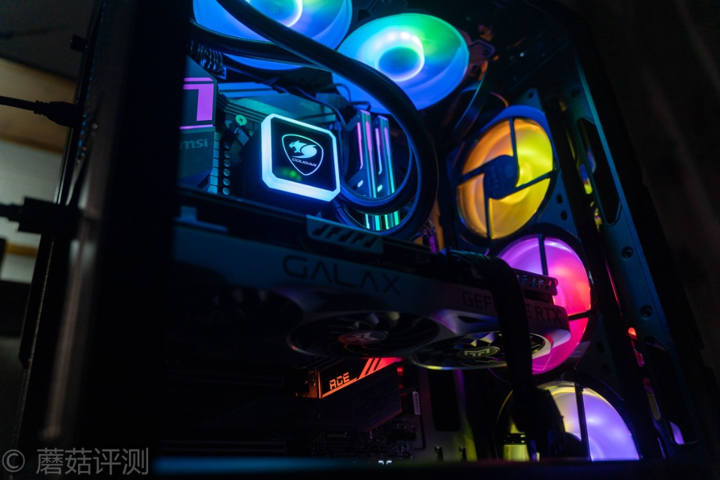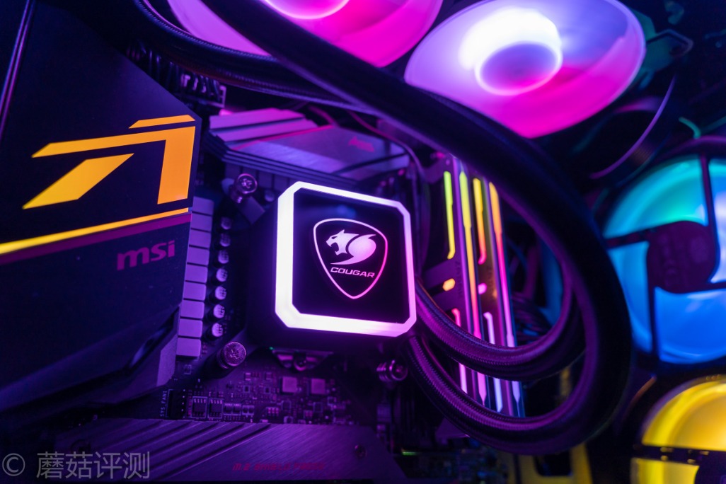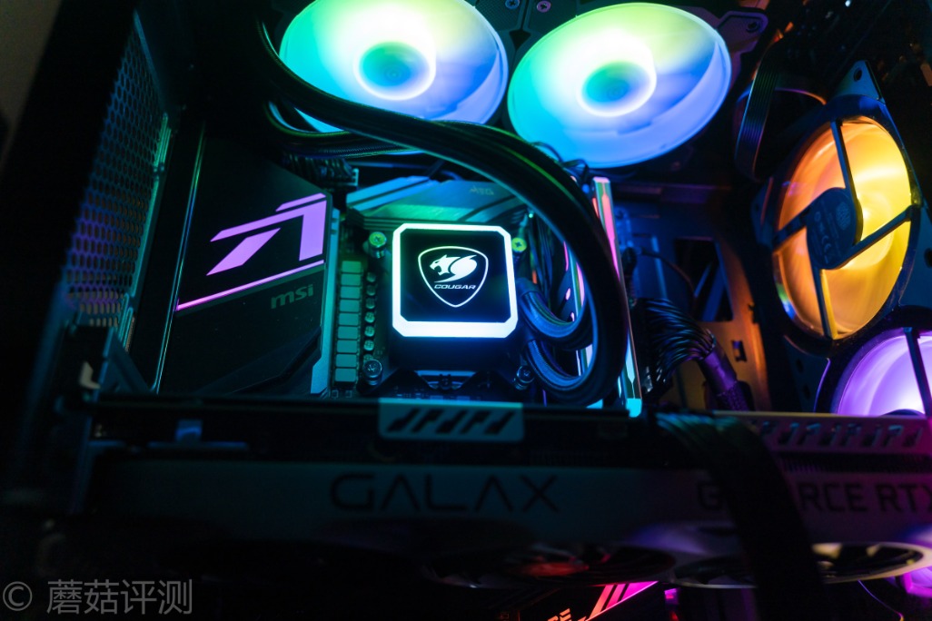▼還支持各種幻彩的RGB燈效,搭配水冷排的散熱風(fēng)扇,效果還是挺好的。