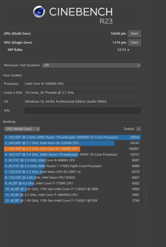 ▼跑個(gè)R23,單核1376、多核16690,不錯(cuò)的成績。