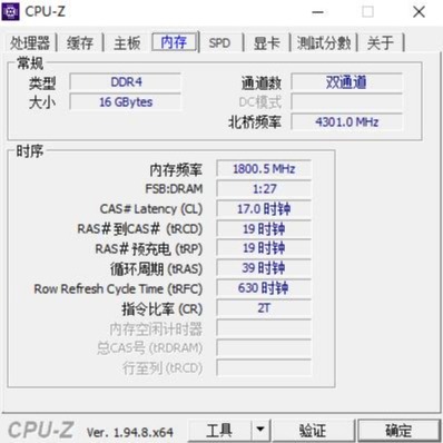▼內(nèi)存是8G*2 3600MHz,時(shí)序17-19-19-39,整體不錯(cuò)。